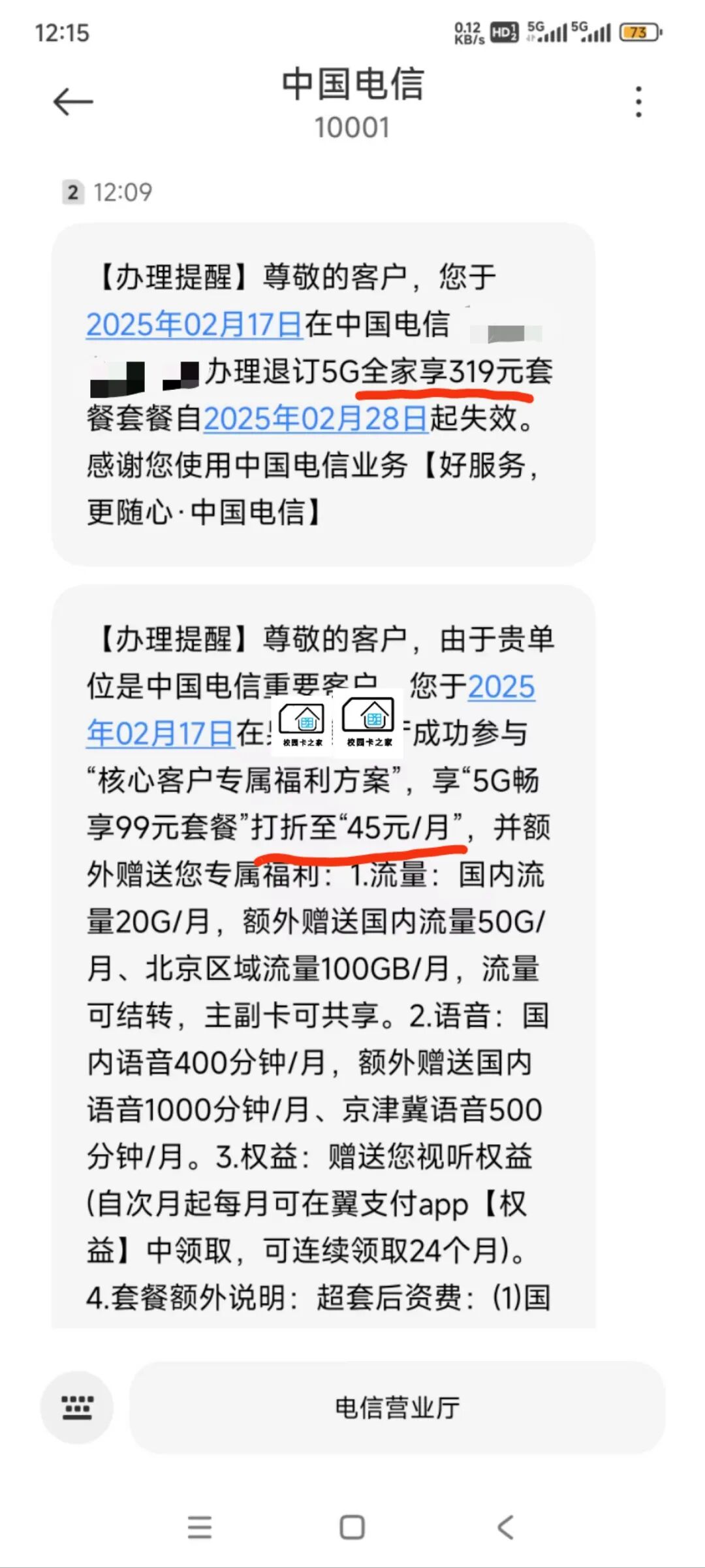 电信政企套餐最近办理了一大批,我一直是很不喜欢把客户的反馈发出来,但是一直有部分粉丝持怀疑态度,不相信这个套餐是真实的,那我就给大家看一些近期办理完的客户套餐真实反馈截图吧,仅供大家参考。