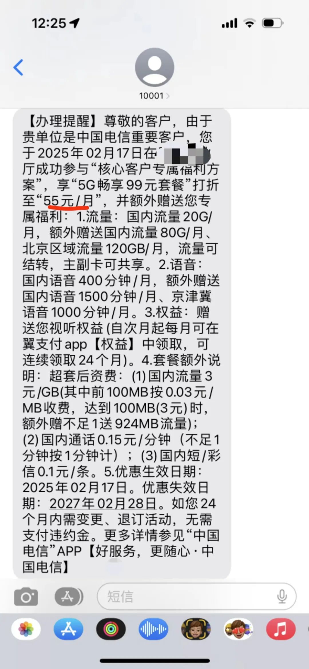 • 55元套餐每月权益金20元(45元套餐为10元),两年累计可省480元,相当于月租降至35元/月(55元-20元),性价比显著。