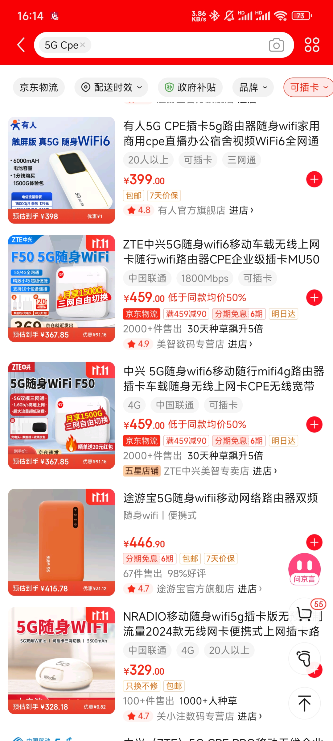 今天去各大电商平台上看了一下5G CPE的价格基本来到了300-500元的价位了,所以这个解决方案的性价比又凸显出来了。