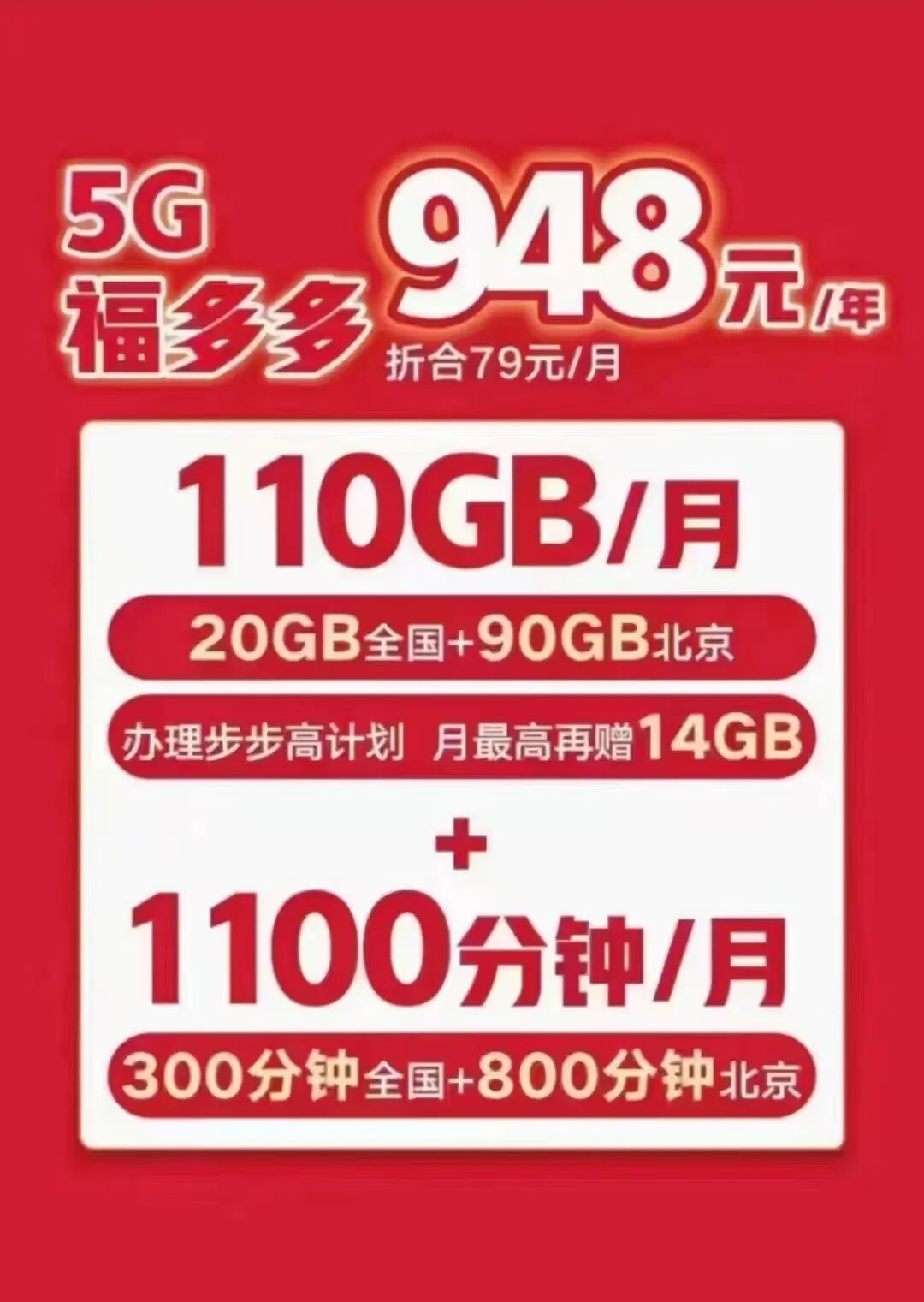 如果对通话流量需求都比较大,但是宽带没需求的那就不要错过948包年的这款了,每月110G流量+1100分钟通话,流量通话都让你用到爽。