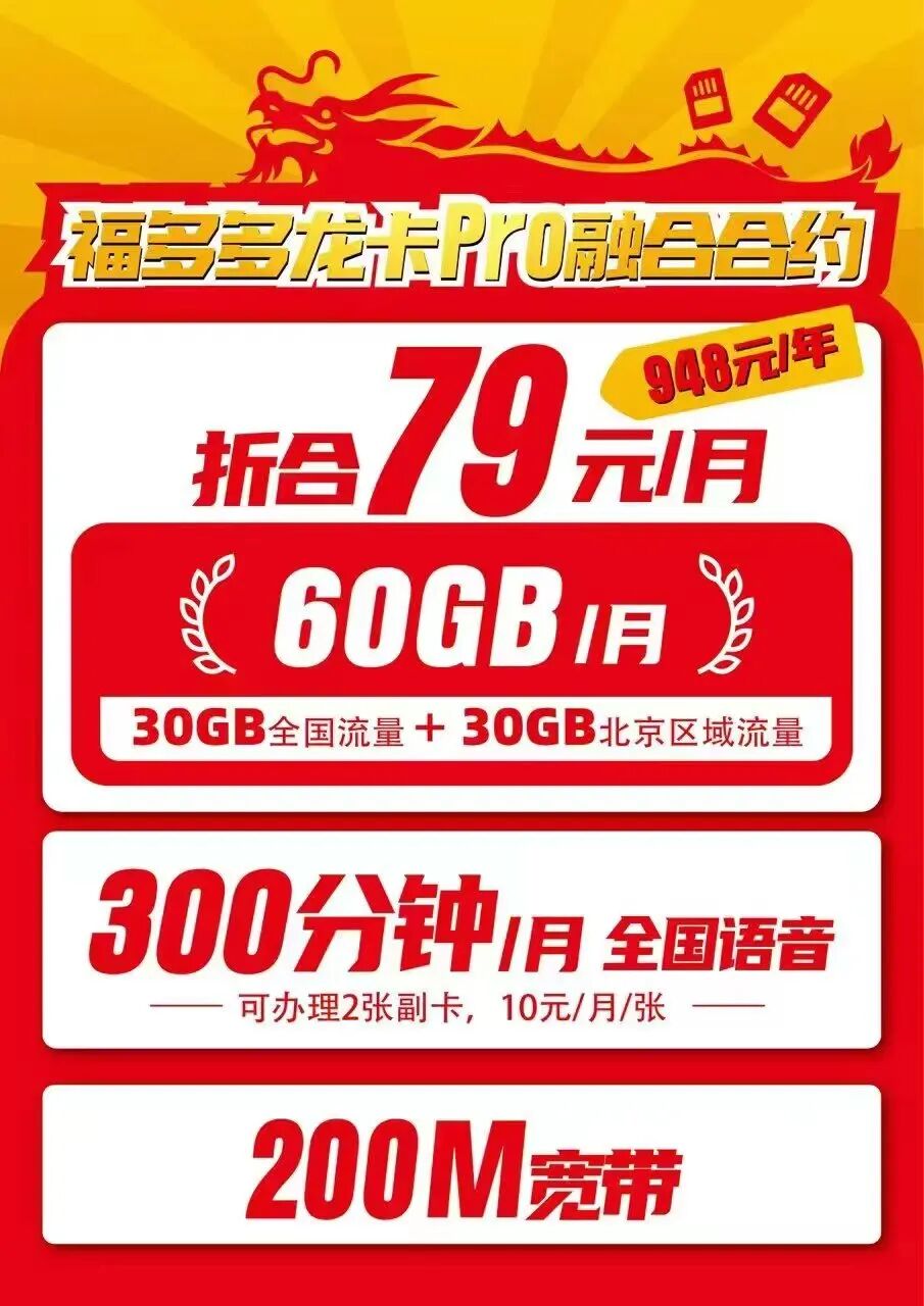 第二个是福多多龙卡Pro版,948一年,比上面那个贵了些,但是这个流量有60G,对于流量有需求的就不要错过这款,同时还有300分钟通话日常使用是足够了。