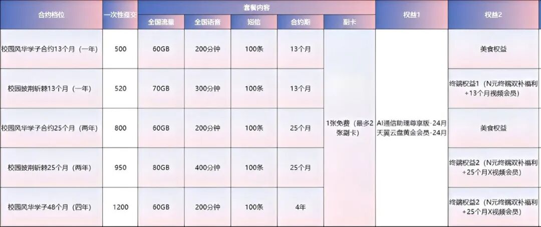 :今年电信校园卡5档套餐可供选择 - 后发优势