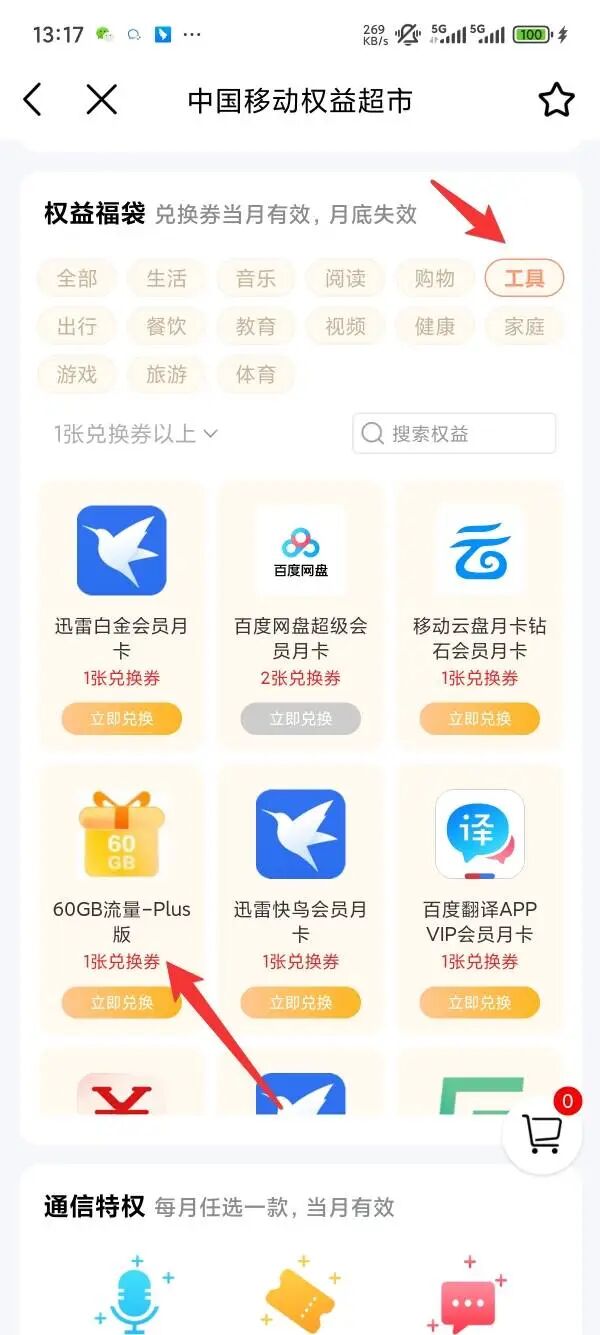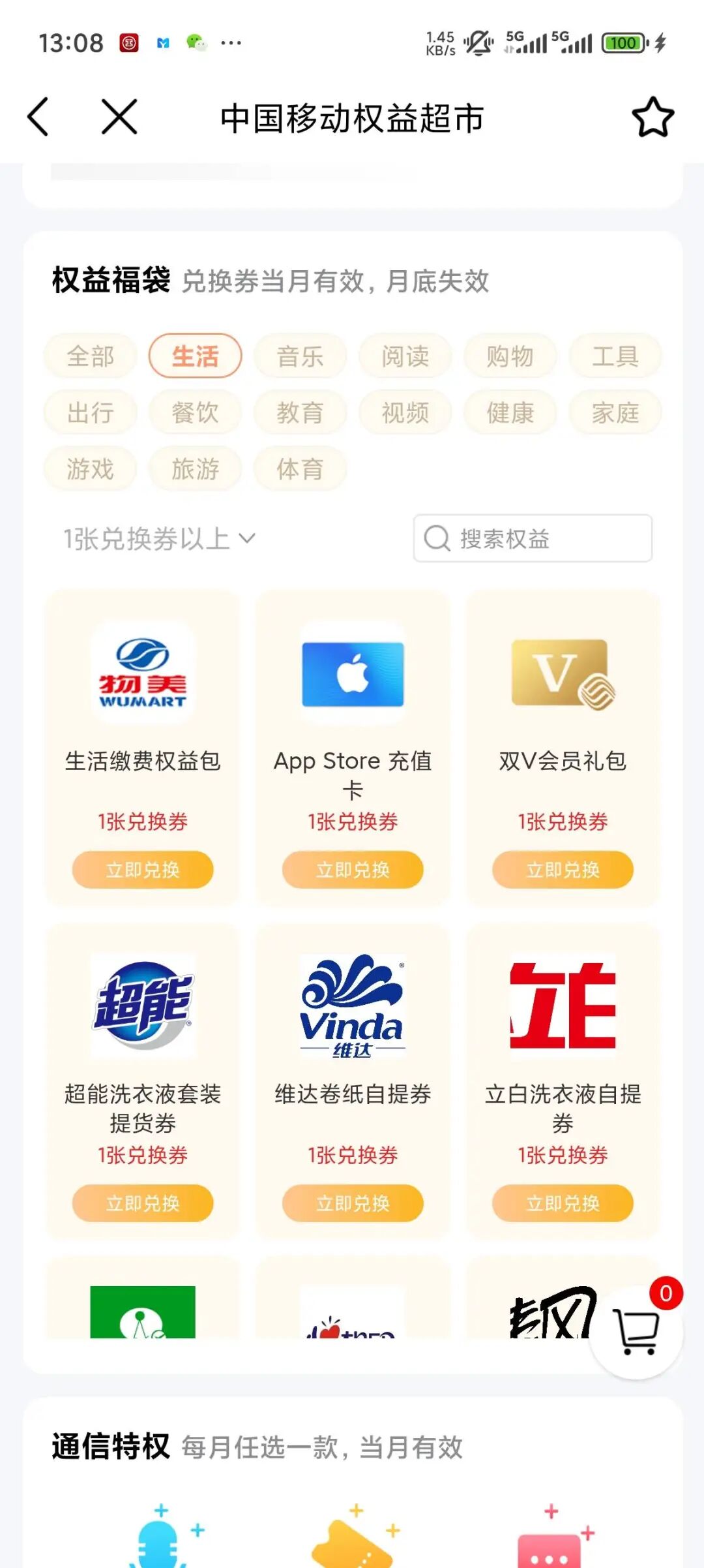 移动校园卡副卡权益集中在权益超市,兑换券当月有效,覆盖生活、娱乐、实用工具等领域,每月可灵活兑换,满足多样化需求!